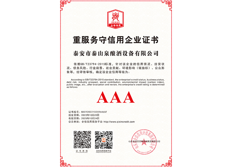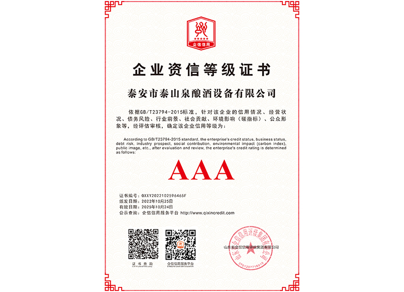 泰安市泰山泉釀酒設(shè)備有限公司,是一家專業(yè)從事釀酒設(shè)備機(jī)械化研發(fā)并集技術(shù)咨詢,工程設(shè)計(jì),制造安裝,人員培訓(xùn)及售后服務(wù)為一體的綜合性企業(yè),本公司主要產(chǎn)品為:大曲清香、小曲清香、大曲醬香、大曲濃香等香型白酒機(jī)械化設(shè)備?! ”竟九c中國科學(xué)院自動(dòng)化研究所簽訂技術(shù)服務(wù)合同,引進(jìn)先進(jìn)技術(shù),研究生產(chǎn)全自動(dòng)化機(jī)械釀酒設(shè)備,由中國科學(xué)自動(dòng)化研究所的技術(shù)支持,打造最先進(jìn)的生產(chǎn)釀酒設(shè)備,公司有信心打造全國最先進(jìn)白酒...
